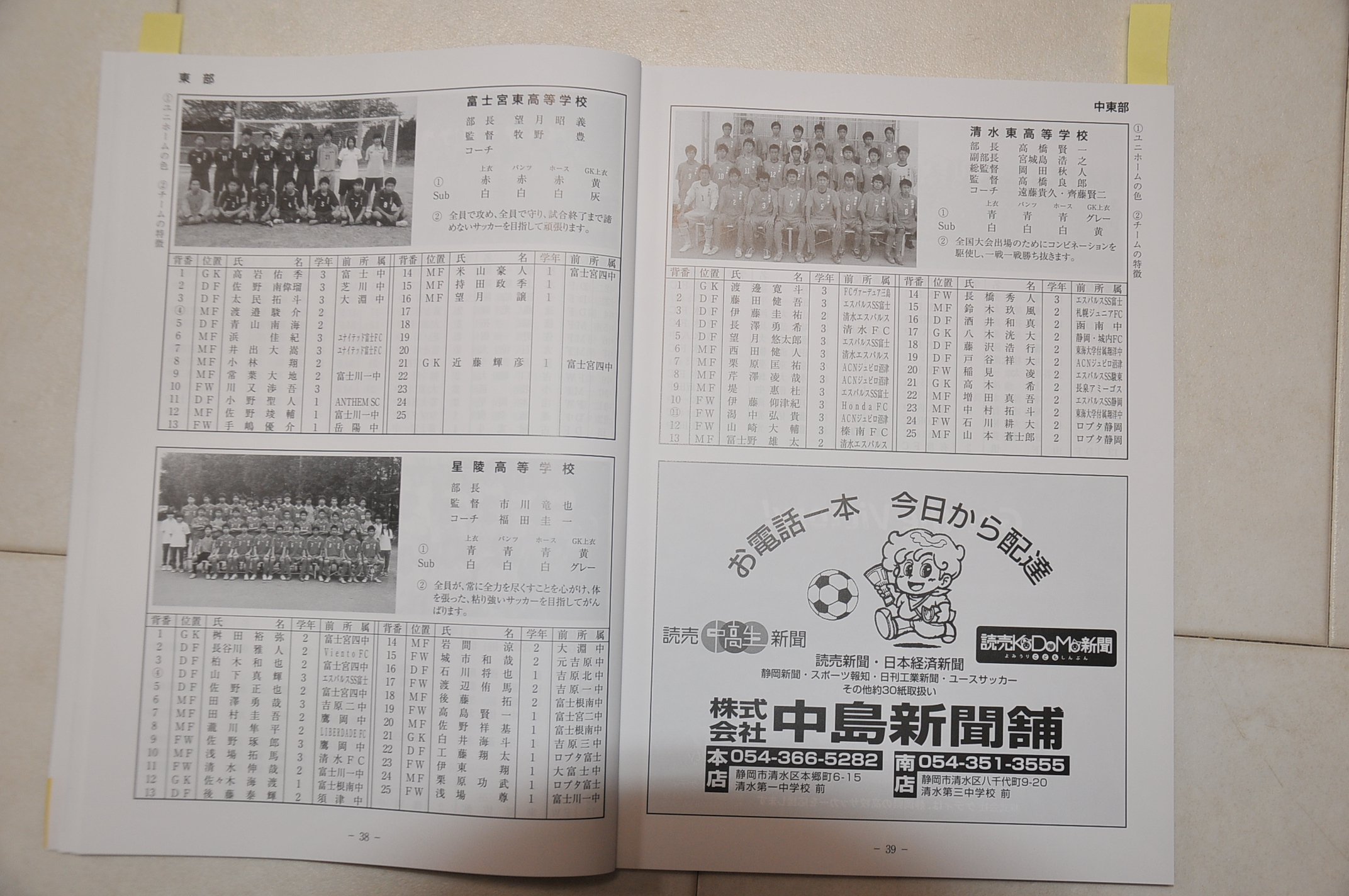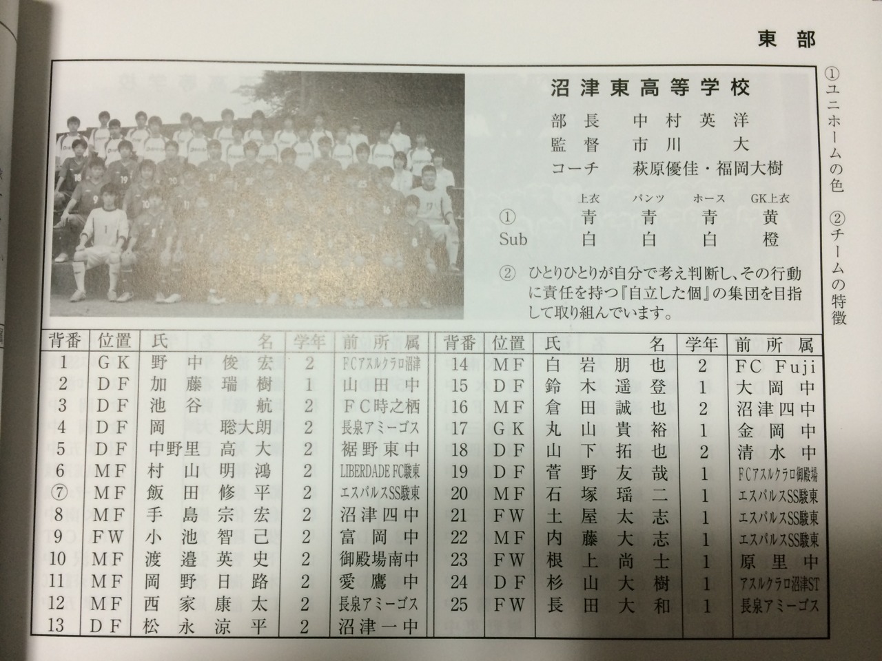 2014選手権メンバーリスト(東部:沼津・三島・御殿場・富士地域)
