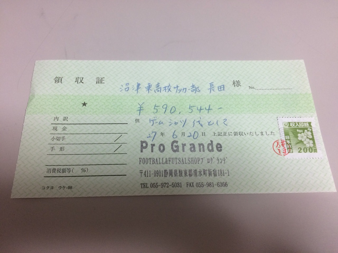 沼東2015-16プラクティスユニフォーム到着!