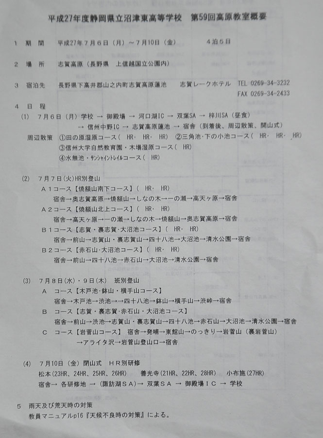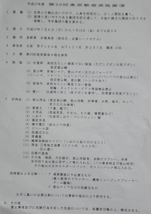 ・三年生は受験準備のため出席しません。